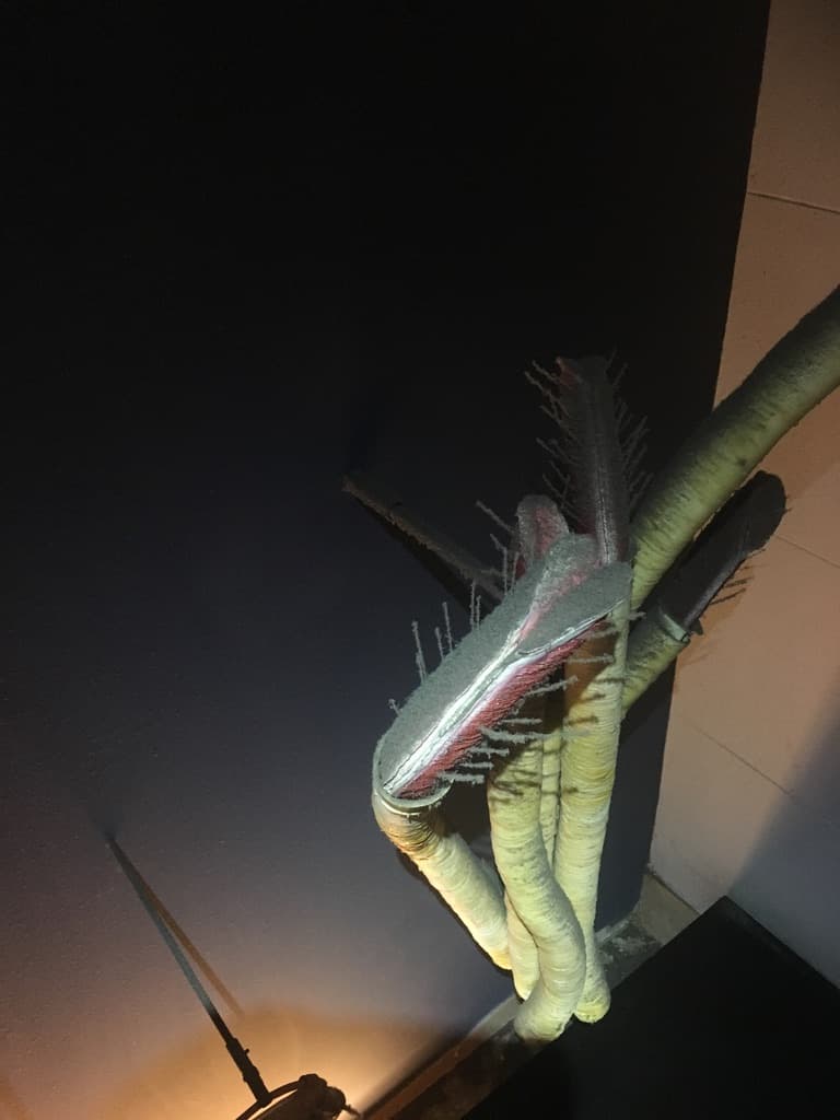 Despite it being my third time cleaning this wall, I am still blown away by how bizarre it is to see all of this stuff covered in dust. It is no surprise the parts are so difficult to clean, given that their shapes, bodies, and souls are made for supple movement in constant currents of water. No dust gathers at the bottom of the sea. They undulate in the breeze that is the ocean current, tides pulled by the moon as the Earth spins on its axis. Dusty starfish, dusty sea anemones, dusty cnidarians. Nearby is the stuff that looks like the inside of a body but is part of the seafloor. The sea body, my own body dusty, my own dusty body.