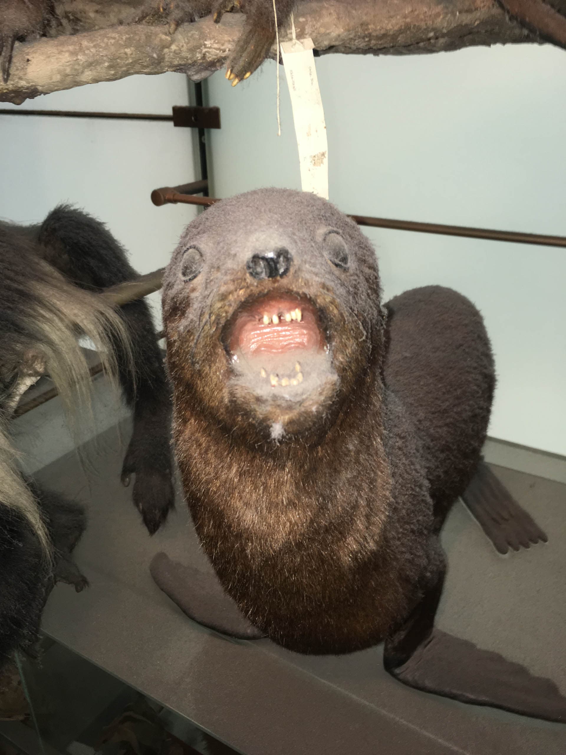 After the dioramas were pristine, we moved on to The Wall of Life, a hundred-foot-long installation arranged into twenty-eight groups covering 3.5 billion years of evolution. I have cleaned The Wall of Life three times in six years. This summer was my third time dusting it, working with two new coworkers who were virgins to the wall. I focused primarily on the underwater world because it is the most delicate: shells, shrimp, algae, mollusks, crustaceans, sea anemones, you know. This part of The Wall of Life is mostly real stuff dried up. The shells are easy to clean, but they are hung precariously. The starfish and urchins have a texture that makes it impossible to sweep dust off with a brush. Typically, the technique for delicate dusting is brushes of various sizes and a Nilfisk vacuum cleaner—vintage Danish design with a knob for an adjustable suck rate. In addition, the museum has a new powerful electric blower, a small tool that generates quite a lot of wind. It helps a lot with the textured sea creatures that were never meant to encounter the light of day, except through depths of shimmering water.