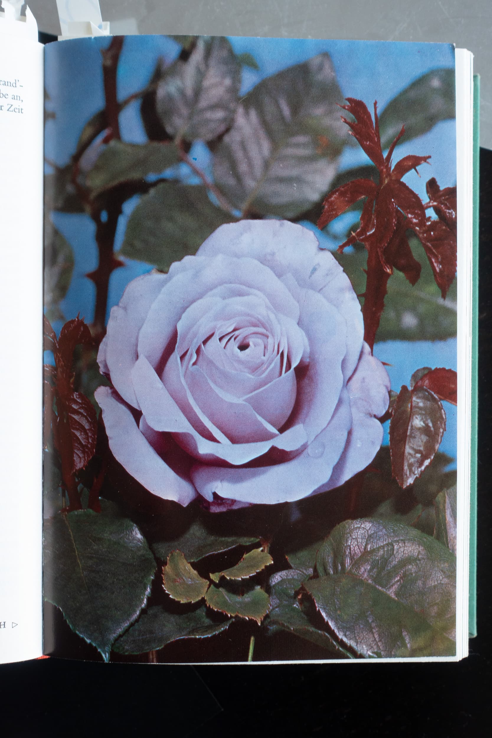 I repeatedly stumbled across this publication over a span of maybe 10 years, and each time I was immediately absorbed by the presence of these images. There is a quality to the way the light renders the petals, surfaces and colors of the roses. It has an utterly hyperrealistic effect that gives them a lively appearance and a sensual lure. At the same time, the perfected representation of the rose in this 1960s manner of image production has something eerie to it. My mind involuntarily tries to make sense of the reductions and the exaggerations. I like to be in that uncertain state of perception, as if I need to verify my vision and further the immediate adjustment that takes place in doing so. For a time, I stored this book in a place where I could find it again, coming back to the pages just for the pleasure of looking, where I am in a state before language and in direct confrontation.